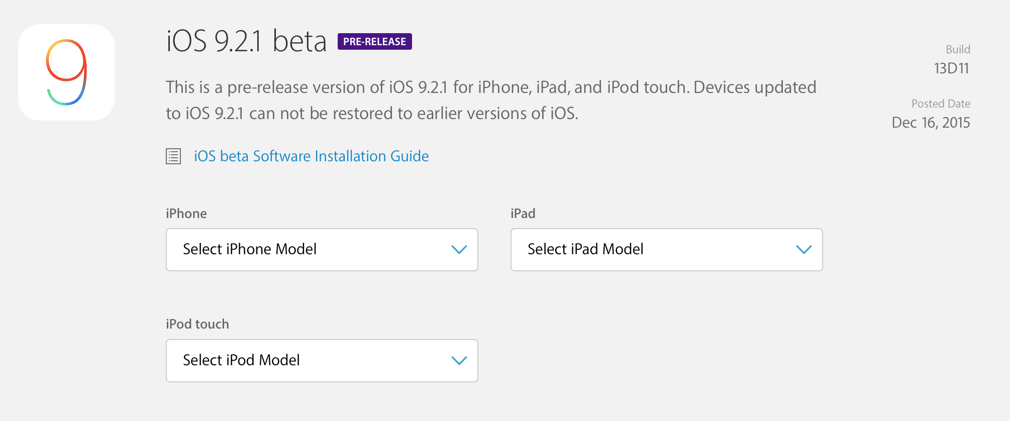 اولین نسخه آزمایشی iOS 9.2.1 برای توسعه‌دهندگان عرضه شد