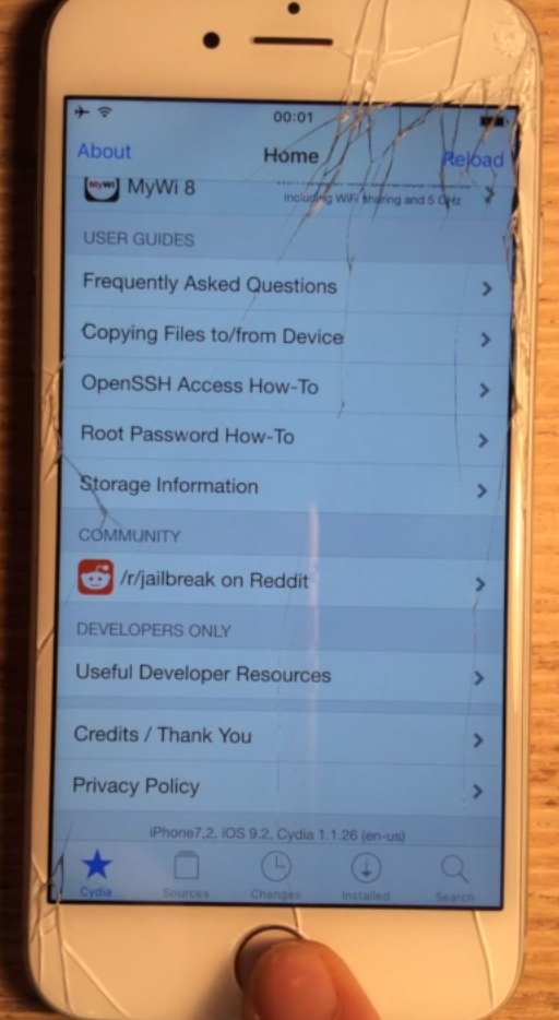 در این ویدیو یک آیفون ۶ بر روی iOS 9.2 مشاهده میکنید که برنامه سیدیا نیز در هوم اسکرین وجود دارد سپس شاهد کار با ترمینال و تمهای وینتربرد خواهید بود. در ادامه qwertyoruiop اشاره میکند که این جیلبریک بر روی iOS ۹.۲.۱ و ۹.۳ بتا نیز کار میکند.